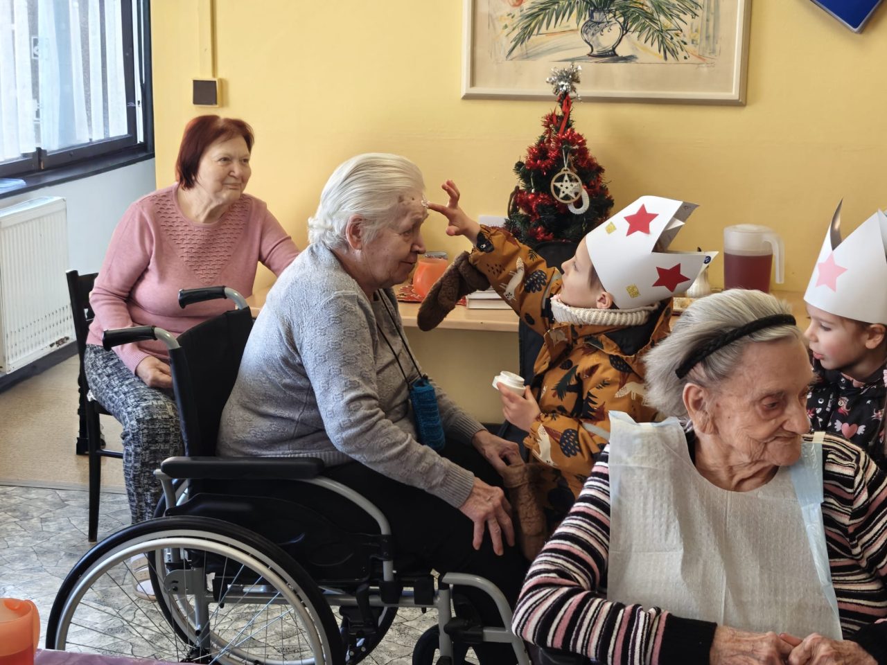 Malí koledníci při mezigeneračním setkávání potěšili koledou seniory v Ledaxu, Naději a v penzionu. Do těchto domů přinesli krásné poselství radosti, vzájemnosti, soudržnosti a dobré vůle. Tříkrálová sbírka dává dětem prostor k vnímání solidarity, učí zájmu o své okolí a představuje tradice naší země.