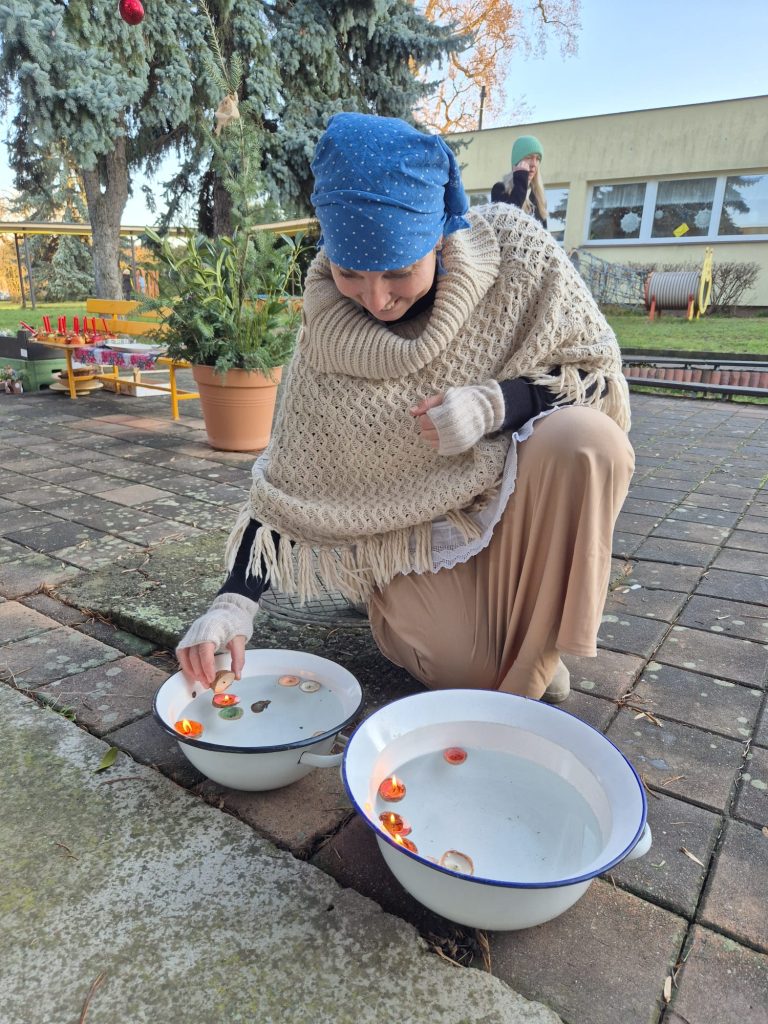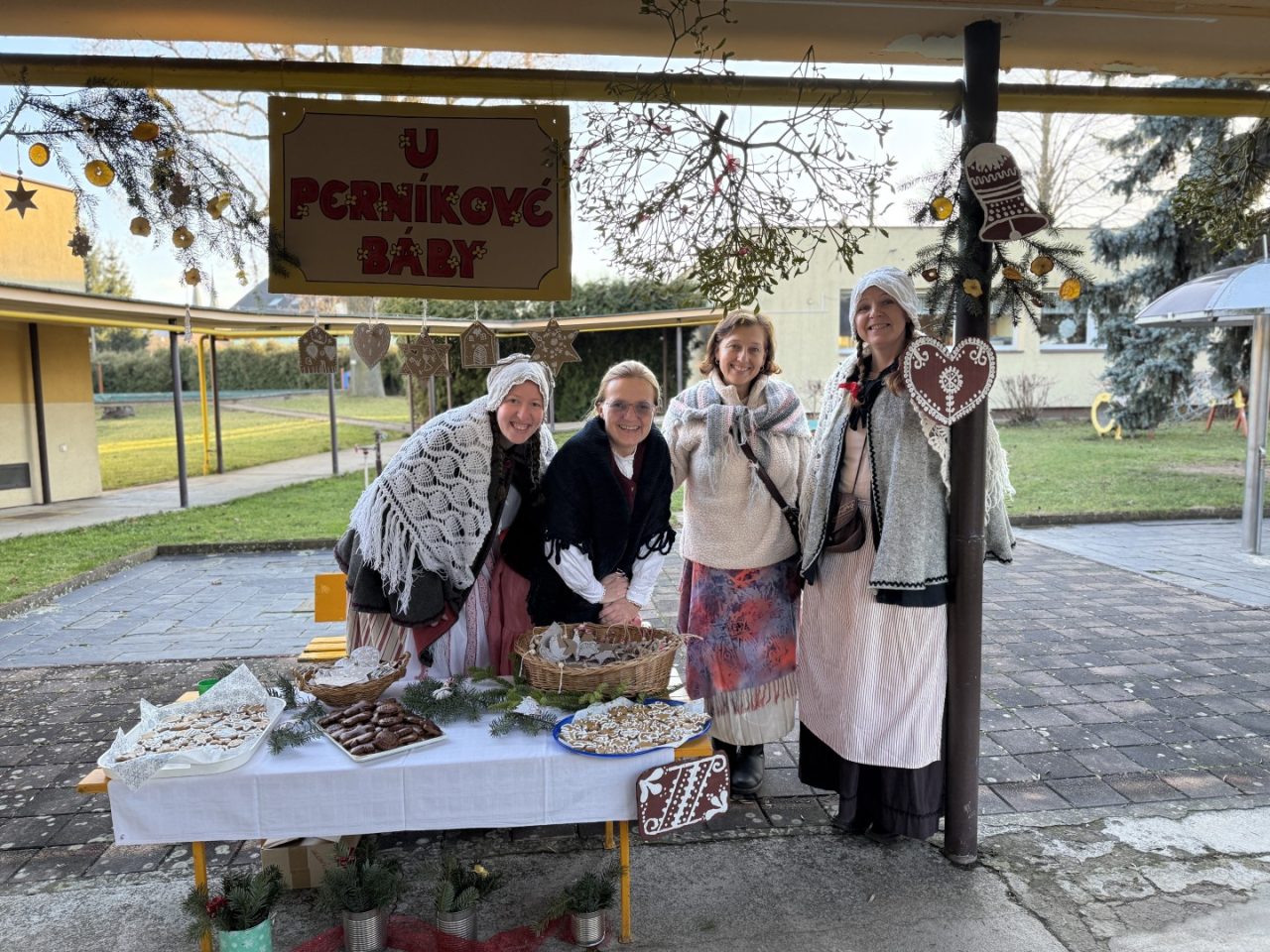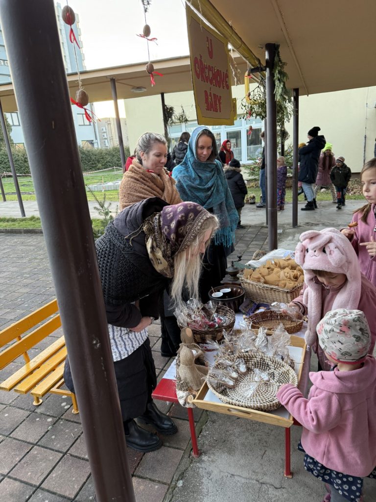 V neckách se šplouchal kapr, v mísách plavaly lodičky z ořechů. Paní učitelky se na chvíli proměnily v trhovkyně a připravily stánky s výrobky a dobrotami, které společně s dětmi vytvořily ve třídách. Návštěvníci tak mohli zavítat ke stánku U perníkové báby, U babky křížalky, U ořechové báby či U andělské báby.